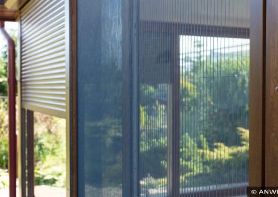 Pleated insect screen is a perfect solution for places with large glazed doors e.g. patios or terraces. The modular structure of the insect screen allows it to be assembled into a single or double panel system. Completely hidden in the aluminium profile when folded, pleated mesh takes up very little space.